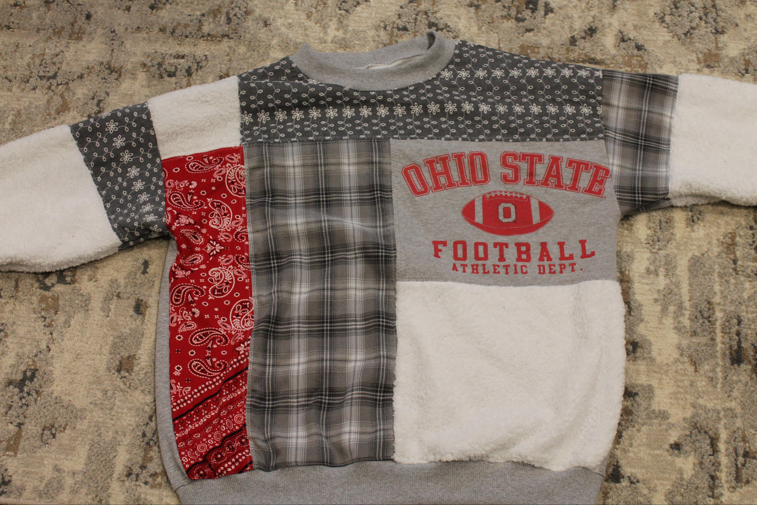 Ohio State Sherpa & Bandana Patchwork Sweatshirt