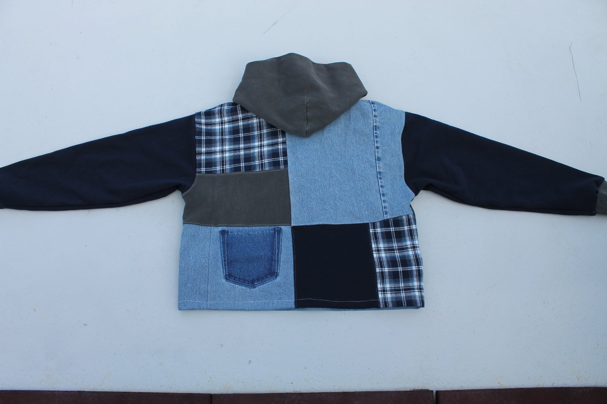 One of a kind handmade patchwork sweatshirt featuring a reworked denim & penn state tshirts!