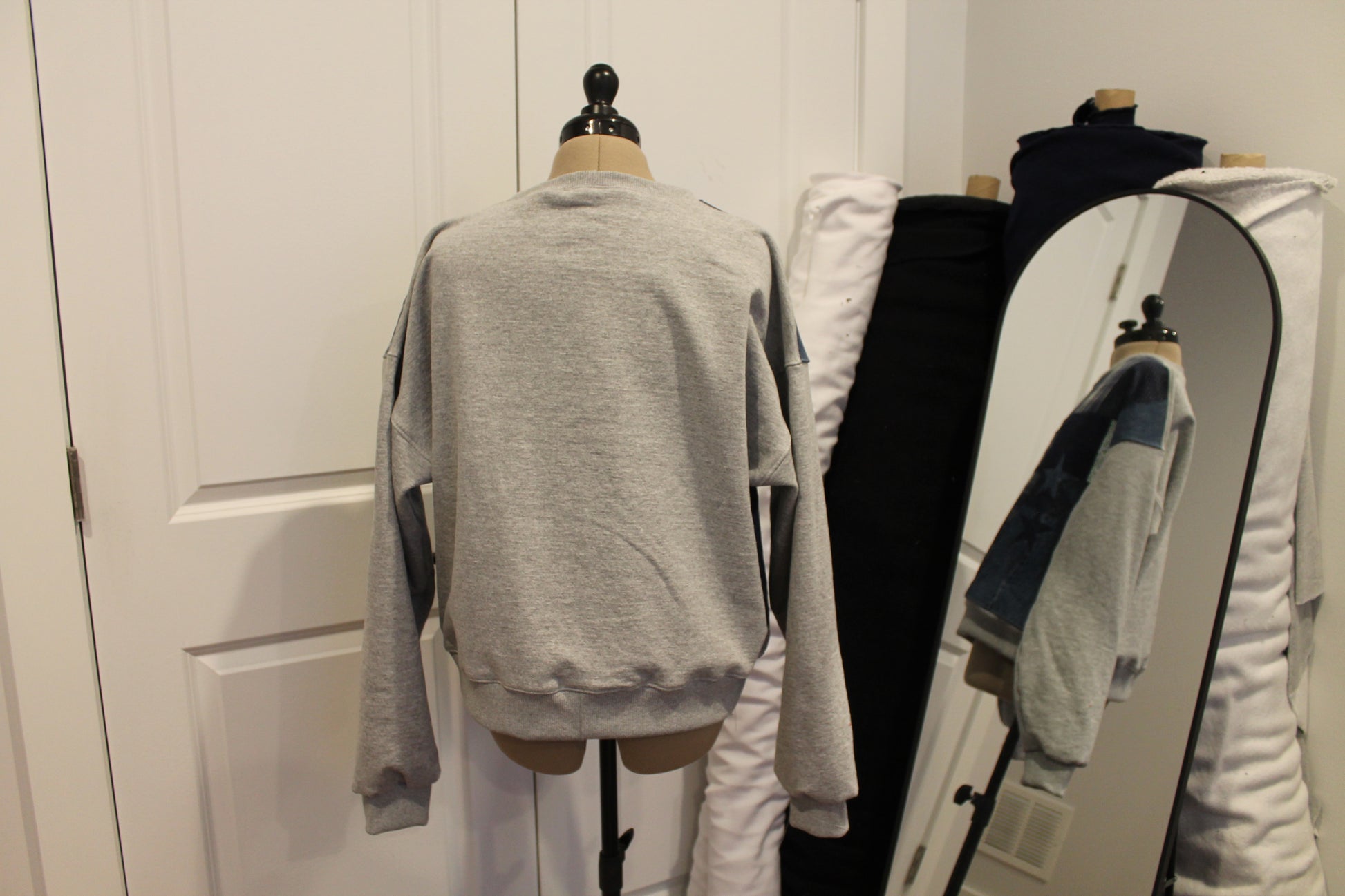 One of a kind handmade patchwork sweatshirt featuring reworked Seahawks tees and denim!